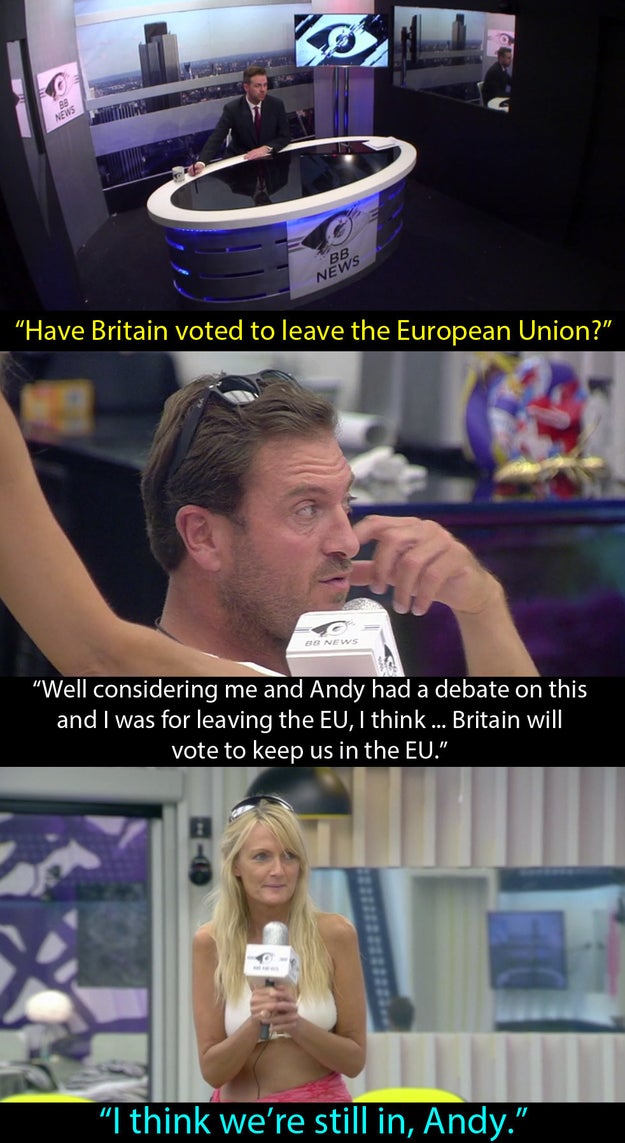 So as you know, the Big Brother contestants are cut off from all news from the outside world. Until last night, that is, when in a task they had to correctly guess what was happening in the news.